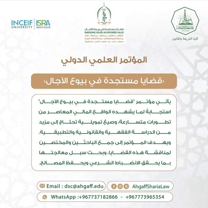 يأتي مؤتمر "قضايا مستجدة في بيوع الآجال" استجابةً لما يشهده الواقع المالي المعاصر من تطورات متسارعة، وصيغ تمويلية تحتاج إلى مزيد من الدراسة الفقهية والقانونية والتطبيقية.