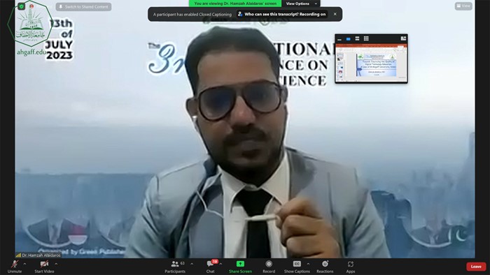 شارك الدكتور حمزة العيدروس من جامعة الأحقاف، الجمهورية اليمنية، كمتحدث رسمي (Keynote Speaker) في المؤتمر الدولي الثالث للعلوم الإجتماعية بإندونيسيا. المؤتمر الذي نظمه ورعاه دار النشر Green Publisher و شارك فيه أكثر من 70 مشاركا من الباحثين والأكاديميين وطلاب الدراسات العليا من مختلف الدول يوم الخميس الماضي الثالث عشر من شهر يوليو. وتمحورت جميع كلمات المؤتمر الرسمية والأوراق البحثية المقدمة حول مستجدات وتحديات جودة تكنولوجيا التعليم الإلكتروني في ظل تحقيق أهداف التنمية المستدامة.